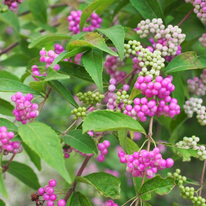 さて、最近わが家では、夏に実を付けていたムラサキシキブが綺麗に色づきはじめました。