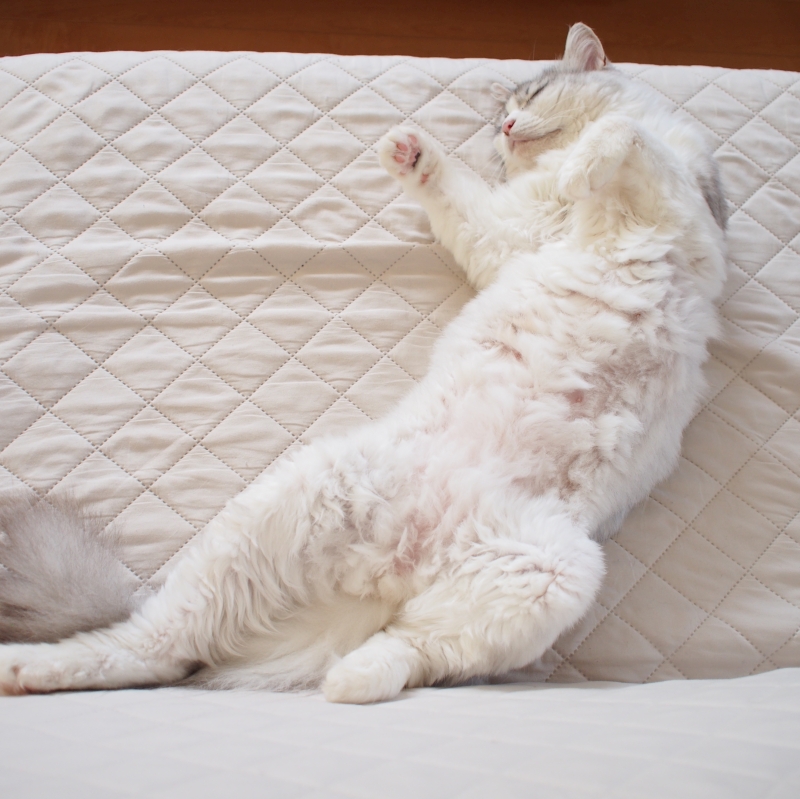 昼間はのび~っと寝ていますが、今朝は久しぶりに香箱座りを見ました。